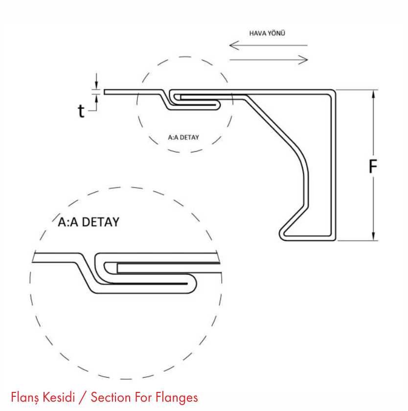 Explanation: The product range of Self Flanged Air Duct productions is the same as for the flanged flanged productions. They can be ordered in variable cross-section sizes. Machine origin is Germany. During manufacturing, silicone is pulled by an automatic system so that the seam remains in the clamp and cannot be seen during closing. Air tightness is ensured at the maximum level thanks to the flange section that prevents air leakage. Ducts manufactured as self-flange provide D Class impermeability according to SMACNA with the appropriate assembly to be made at the construction site. Due to the structure of the machine, 20 and 30mm flanged production is made.