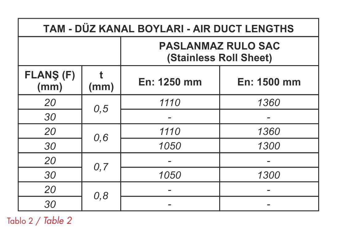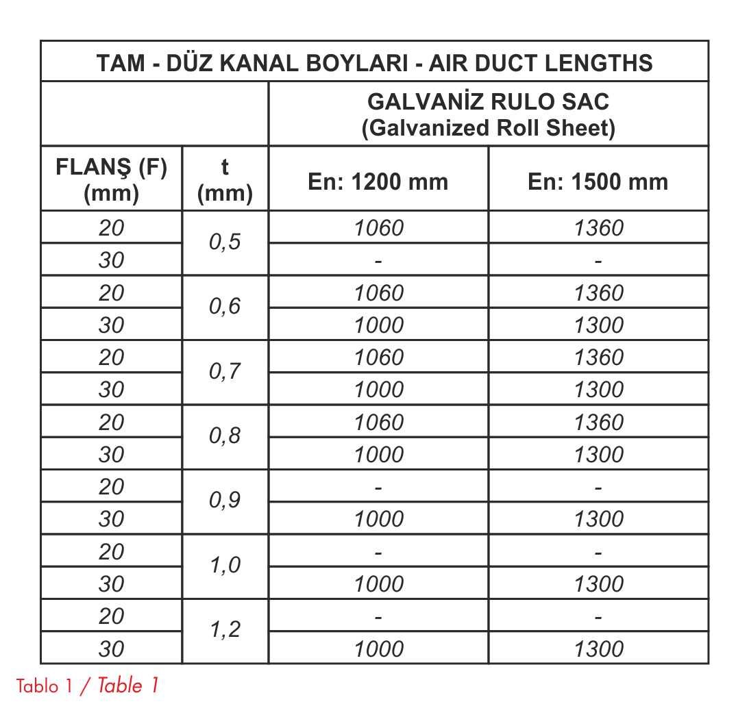 Full duct lengths vary due to the special flange cross section. These details are given in Table-1 and Table-2.