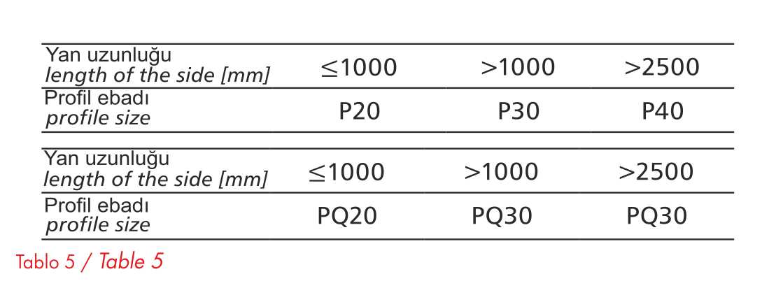 *Bağlantı parçasının bağlantı kesitinin en uzun yanının uunluğu